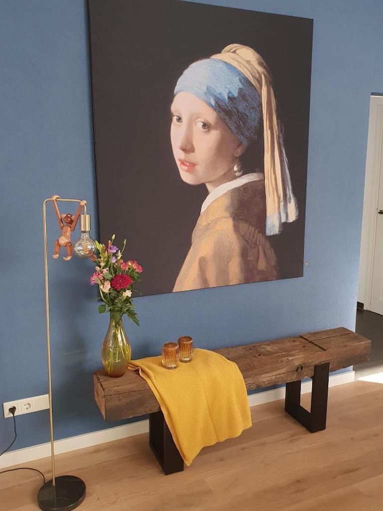 De bielzen en planken zijn geheel schoon gestraald/geborsteld. De stalen poten gemaakt van koker, zijn gecoat in de kleur matzwart.